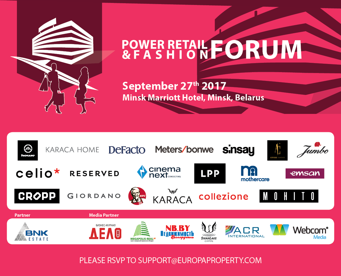 27 сентября 2017 в гостинице Marriott в Минске проведется Белорусский Ритейл Форум, где встретятся международные и локальные ритейлеры с ведущими торговыми центрами и профессионалами коммерческой недвижимости Беларуси.