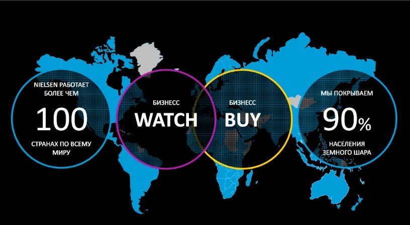 Главная миссия «Nielsen» – помочь бизнесу услышать голос покупателя, понять его настроение, его ожидания, анализировать его поведение, следить за продажами и т.д. Это международная исследовательская компания, которая на сегодняшний день работает в 106 странах мира и включает в свои исследования приблизительно 90% населения земного шара.