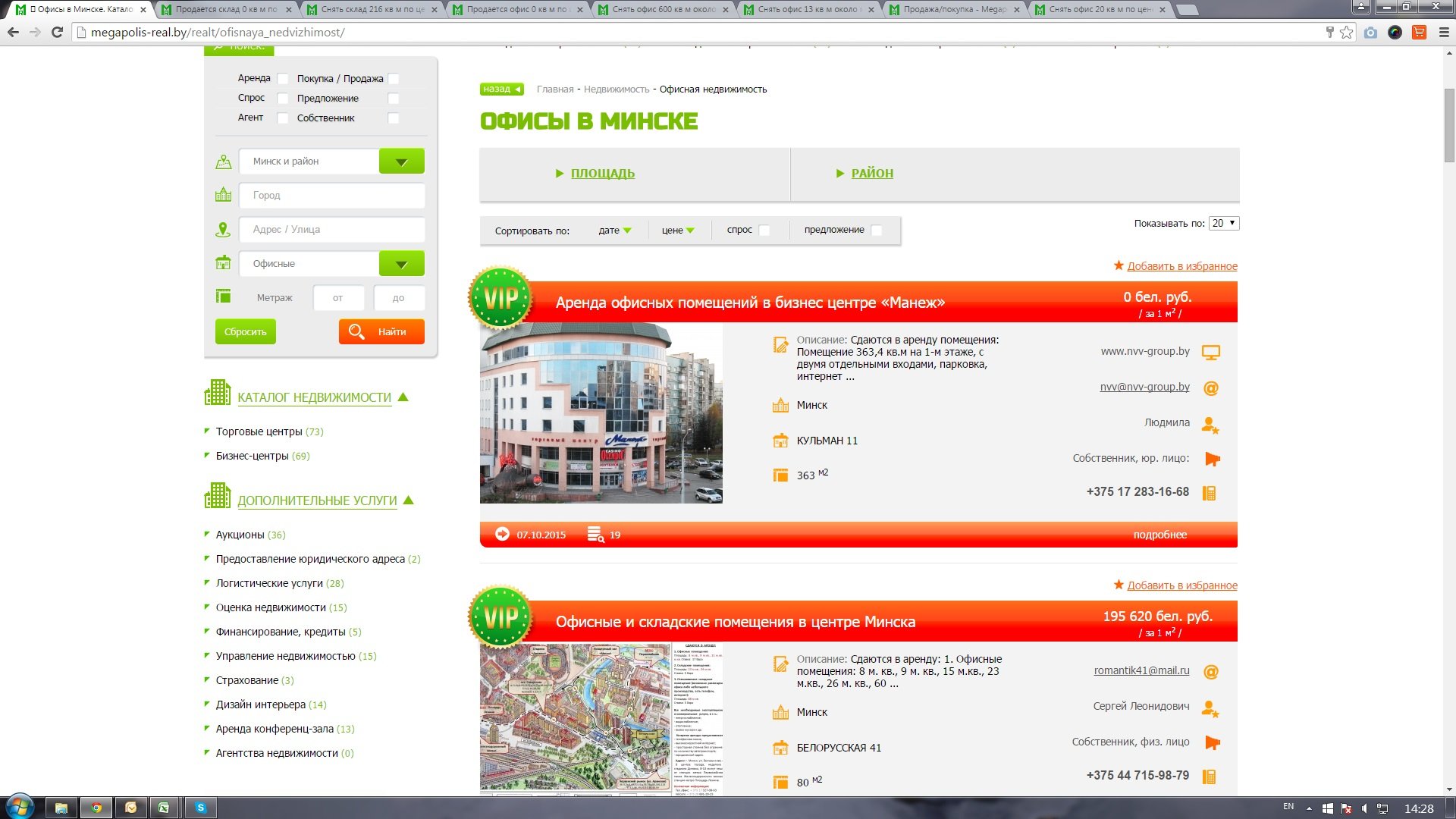 Количество мест ограниченно! В разделе «Офисная недвижимость» на октябрь уже все места выкуплены.