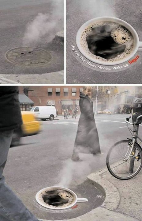 Вот такой способ для рекламы кофе нашли западные маркетологи.