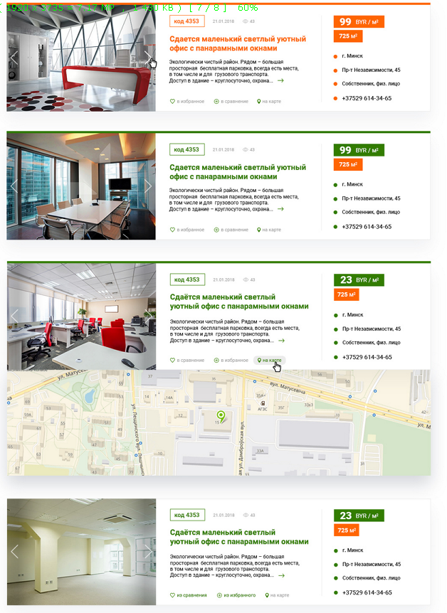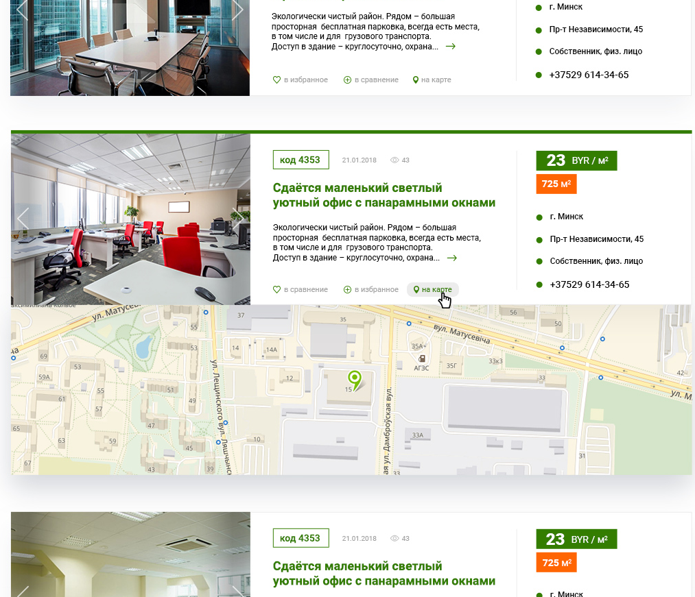 1. Возможность посмотреть местонахождение объекта на карте прямо в списке объявлений, не заходя внутрь карточки.