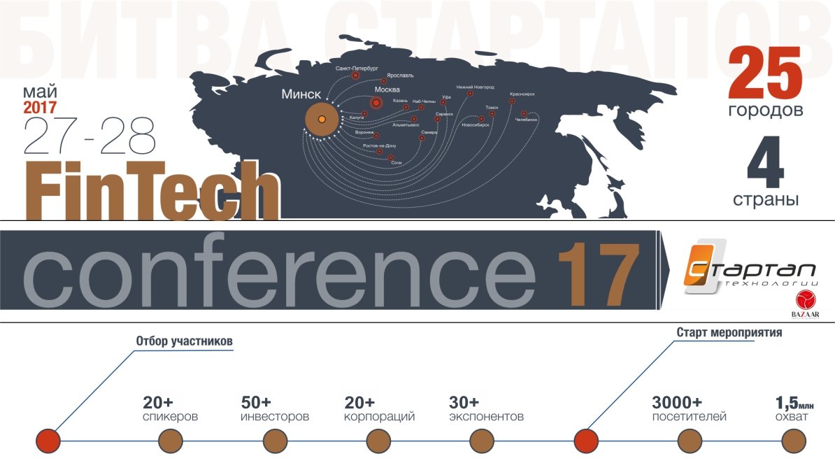 27-28 мая в Минске в бизнес-центре гостиницы «Виктория» пройдет Minsk FinTech Conference 2017, организатором которой выступит центр поддержки предпринимательства ООО «Стартап-технологии» совместно с венчурной платформой Bazaar. Генеральным партнером конференции выступит компания «Мегаплан» В рамках мероприятия пройдет второй этап битвы стартапов между стартапами из Беларуси и 20 российскими городами, которые сразятся за звание лучшего, а также за солидный призовой фонд. Мероприятие соберет более 2000 участников из США, Европы и Азии. Так же примут участие в конференции свыше 30 инвесторов, 20 спикеров, представители 10 корпораций в области финансовой сферы и FinTech-технологий. В рамках конференции будет организована выставка, где компании смогут представить различные технологические решения, а также свои разработки в области программных и аппаратных решений.