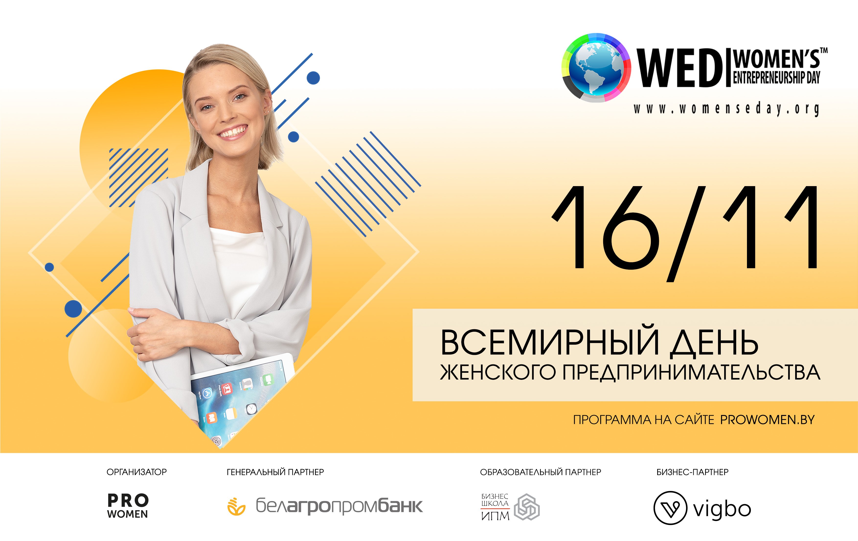 Генеральным партнером Дня женского предпринимательства в Беларуси уже второй год является ОАО «Белагропромбанк» – один из крупнейших банков Беларуси. Образовательный партнер – Бизнес-школа ИПМ. Бизнес-партнер – конструктор сайтов Vigbo.