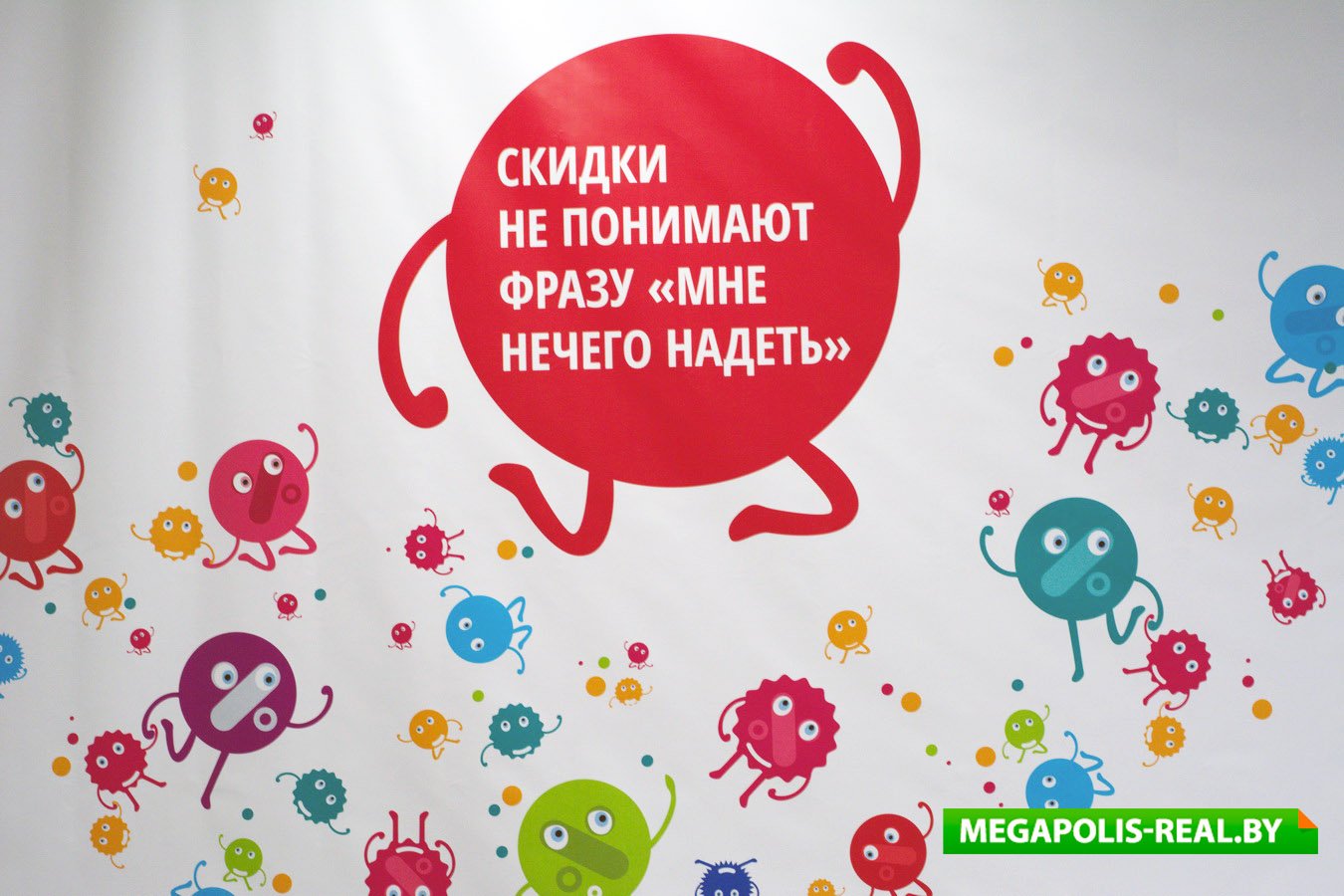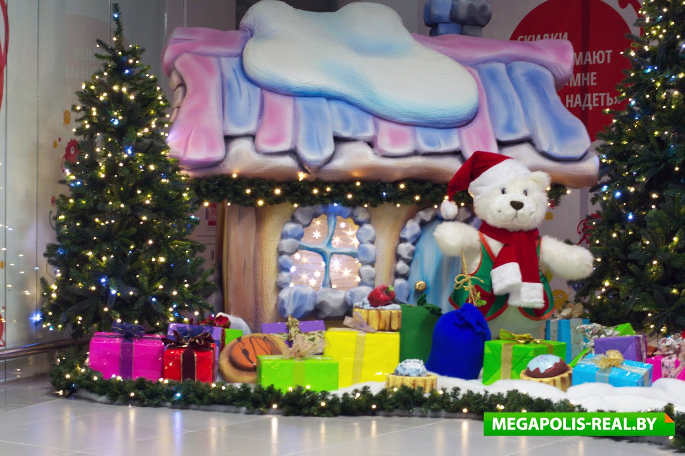 Весь торговый центр празднично украшен (что особенно порадует посетителей с детьми) и готовит своим покупателям весьма приятные скидки в преддверие Нового года и Рождества. Стены торговых залов обклеили яркими стикерами: «открытие нового магазина не за горами, а за этим стеклом», «одежду ещё не завезли, но цены уже снизили», «скидки как никто знают, что обуви много не бывает», на фоне которых можно удачно сфотографироваться. Это небольшое развлечение поднимает настроение и отвлекает внимание посетителей от пока пустующих павильонов, которые планируется заполнить до 1 июля 2016 года.