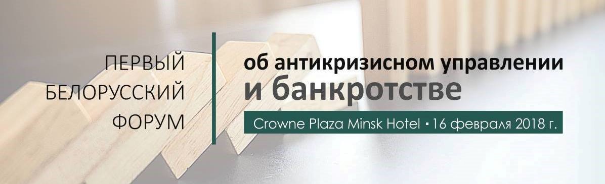 16 февраля 2018 г. на Первом белорусском форуме об антикризисном управлении и банкротстве со спикерами и экспертами обсудим:
