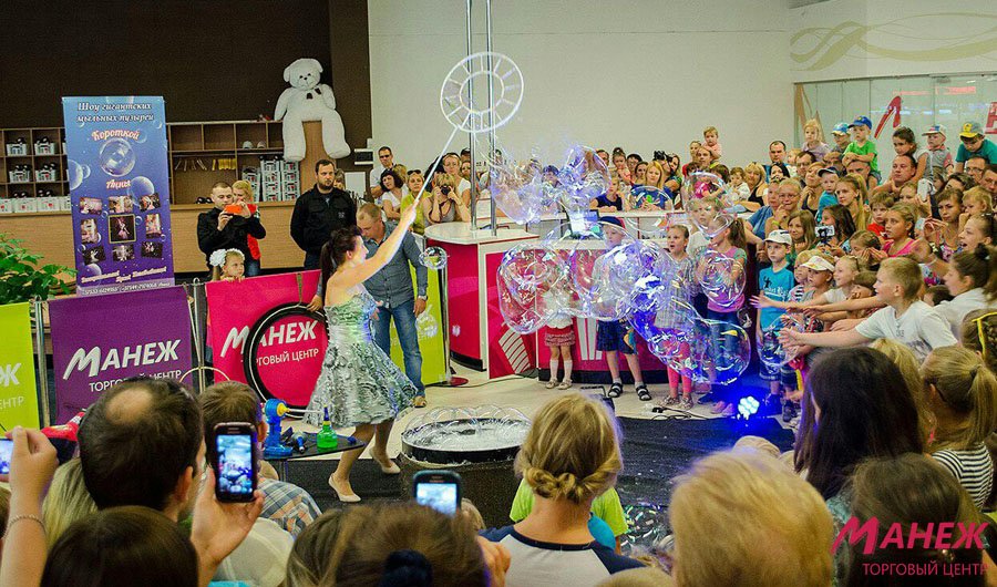 – Каждые выходные и праздничные дни посетителей торгового центра «Манеж» ждут разнообразные развлекательные мероприятия: музыкально-танцевальные шоу, мастер-классы, анимационные программы. Детишек радуют клоуны, пираты, ростовые куклы.