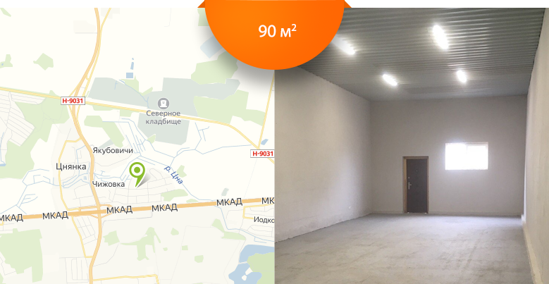 90 м.кв. под склад, высота потолков 4 метра, ворота 3 на 3.5 метра, хорошие подъездные, рядом с кольцевой.